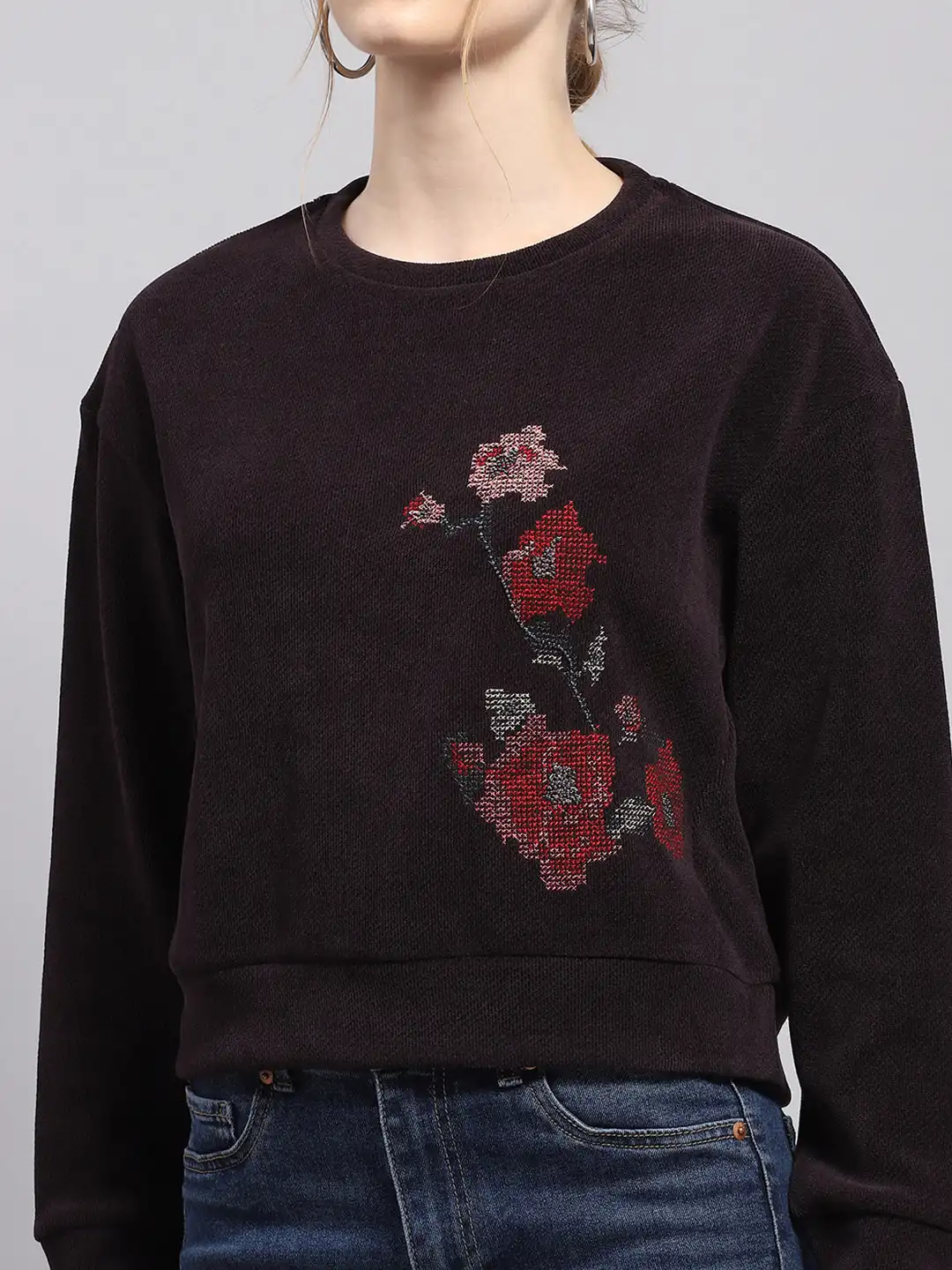 Women Maroon Printed Round Neck Full Sleeve Sweatshirt
